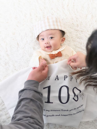 100days祝いドレス・スーツ(洋装)での撮影になります。